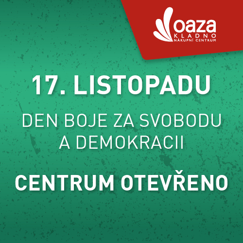 Otevírací doba během svátku 17. 11. 2025 Platnost: 17. 11. 2025 Vážení zákazníci, dne 17. 11. 2025 bude nákupní centrum OAZA otevřeno dle běžné otevírací doby. Těšíme se na Vaši návštěvu.