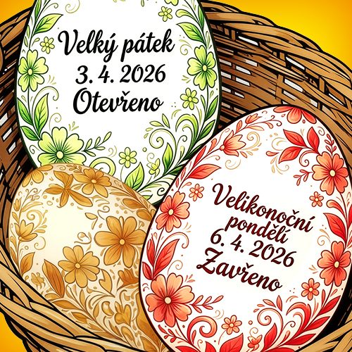 Dne 6. 4. 2026 (Velikonoční pondělí) bude nákupní centrum uzavřeno. Otevřeno zůstává fitness centrum Hakim fitness a kavárna Sahara Café, kde bude probíhat grilování.