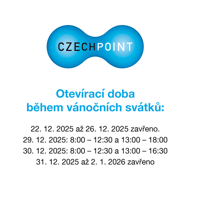 Vážení návštěvníci, dovolujeme si Vás informovat, že během vánočních svátků dojde k úpravě pracovní doby na pracovišti Czech POINT: